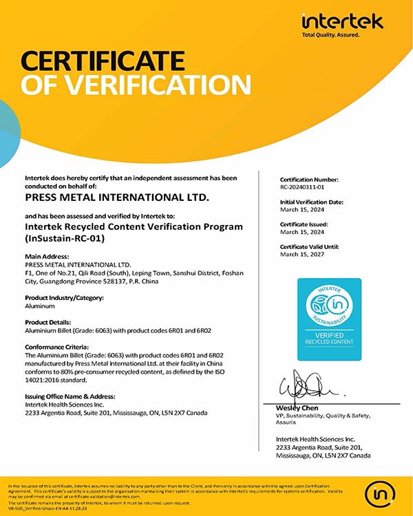 鋁業(yè)管理倡議ASI績效標(biāo)準(zhǔn)認(rèn)證